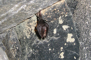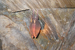 The Serotine (Eptesicus serotinus) is a large bat, which generally inhabits buildings and hollow tress but which has been recorded as hibernating in caves and mines.
