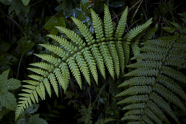 Soft Shield fern (Polystichum setiferum) is common around cave entrances and can be found on slopes near caves.