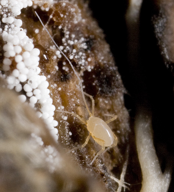 Inside the cave the lack of green plants results in the absence of a big chunk of this food web. Micro-organisms in the cave use different metabolic pathways that do not need light for photosynthesis – these organisms are crucial for the basis of the food chains in caves.
