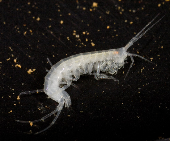 Amphipoda means "different-footed", and refers to the different forms of appendages these crustaceans have. Their bodies are flattened laterally (sideways) and the order includes the shrimps. Mendip caves contain five species of troglobitic cave shrimp.