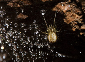 Linyphiidae in Read's Cavern. The mass of webs are coated in moisture. |