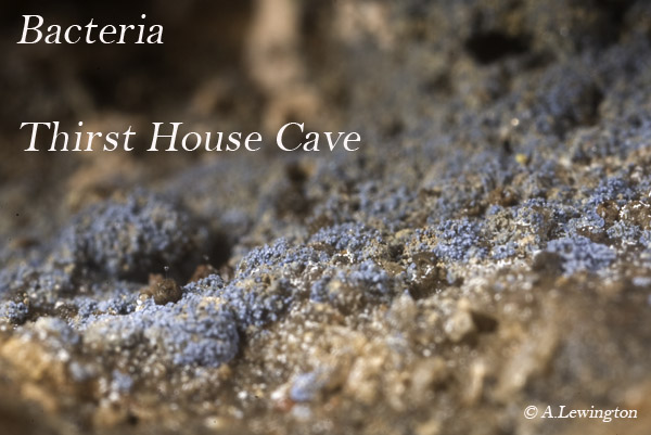 There are many species of bacteria found in the cave environment, most of which you will not notice as they are individually minute. Between them they have a variety of lifestyles including photoautotrophs that use photosynthesis, chemoautotrophs that use other chemical processes to obtain energy from minerals and gases, heterotrophs that gain energy from existing organic compounds. Bacteria are prokaryotes - single celled organisms.