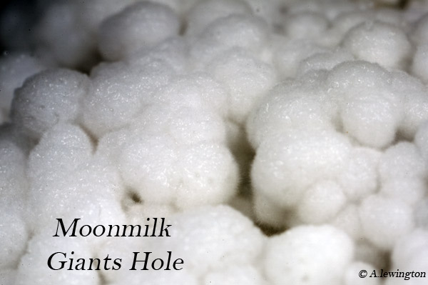 Moonmilk is a white pasty rock that is brittle when it dries out. The process by which limestone is converted to moonmilk is uncertain but appears to involve bacteria. An analysis of moonmilk shows it to consist of a complex of unusual magnesium and calcium carbonates with an abundant amount of organic matter, mostly made up of bacteria such as Macromonas bipunctata as well as actinomycetes and algae. Macromonas bipunctata is a heterotrophic aerobic Gram negative bacterium that also has the ability to oxidize reduced or partially oxidized inorganic sulfur compounds.