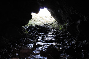 At the entrance there is often a deep shade cast by the rock face or by overhanging vegetation beyond the reach of grazing sheep. The proximity of the entrance keeps humidity high and reduces the variation in temperature. It may also prevent rain from falling onto the plants. As you pass through the entrance green plants come to an abrupt end except for patches of green algae on the walls and ceiling facing the entrance.