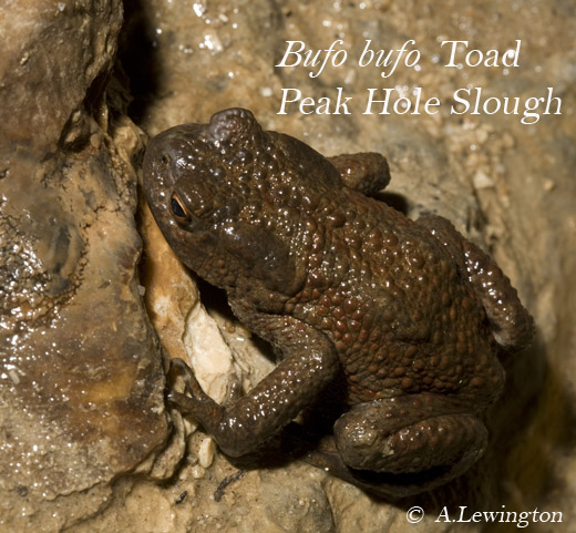 Common Frogs Ranus temporaria can be found some distance underground, and toads Bufo bufo nearer the entrances.