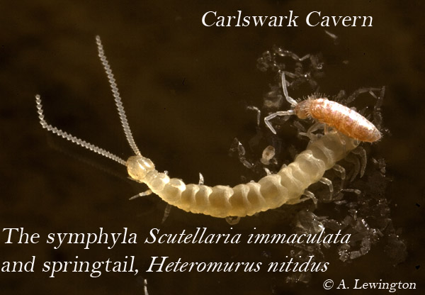 The symphylan Scutigerella immaculata and springtail Heteromurus nitidus, Carlswark Cavern. |