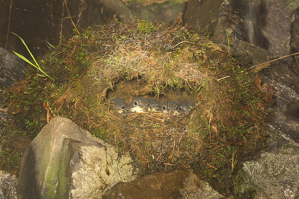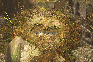 Young Dippers in nest inside main entrance of Porth yr Ogof. |