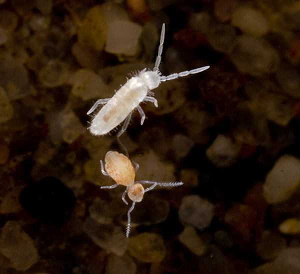 The grey brown Pariosotoma notabilis (1.4mm) is found deeper underground.