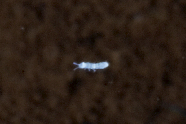 Folsomia sp. are found near the entrance or where the surface is not far above. They can leap a short distance (c 1cm). Folsomia candida is found around the world and can survive underwater where the oxygen levels are low.