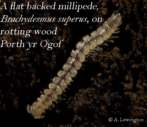 Brachydesmus superus on rotting wood, Porth yr Ogof |