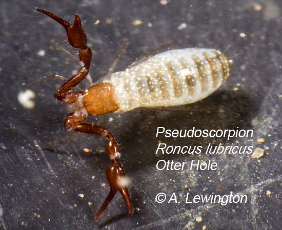 Pseudoscorpion Roncus lubricus, Otter Hole |