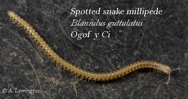 Spotted snake millipede Blaniulus guttulatus, Ogof y Ci |