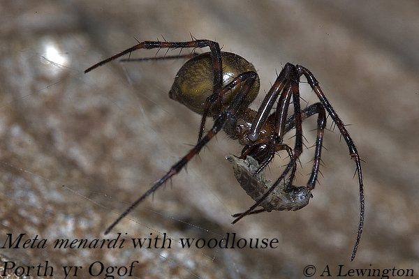 Meta menardii with a woodlouse, Porth yr Ogof. |