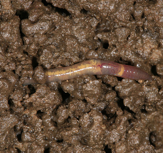 Pink form of the Green or Stubby Worm Allolobophora chlorotica, Ingleborough Cave |