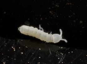 Folsomia sp. are found near the entrance or where the surface is not far above. They can leap a short distance (c 1cm). Folsomia candida is found around the world and can survive underwater where the oxygen levels are low.