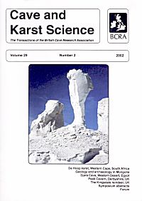 Open Access to C&KS: From Volume 51(1) (April 2024) all individual papers in C&KS will be Open Access, although some additional content (e.g. supplements) might still require a login. Open Access means that you will not need to log in to download a paper. Open Access is indicated by the open padlock icon next to each listing. Issues of C&KS published before 2024 (i.e. volume 50 and earlier) continue to require a login, which is free. BCRA members may apply for a free online id, and all visitors to these pages are offered the option of a monthly free login when they try to download any protected content. Contents of Cave & Karst Science 29(2)This page may take a few seconds to load. Please wait ... A list of contents for this issue is not available online. To access a free download of this issue, and to link to the British Caving Library online catalogue please go to the C&KS Catalogue Listing. |